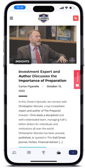 Get advice from top business professionals along with access to exclusive and relevant insights. Closer’s Coffee stories some of the nation’s top executives, entrepreneurs, and sales professionals. Get connected!